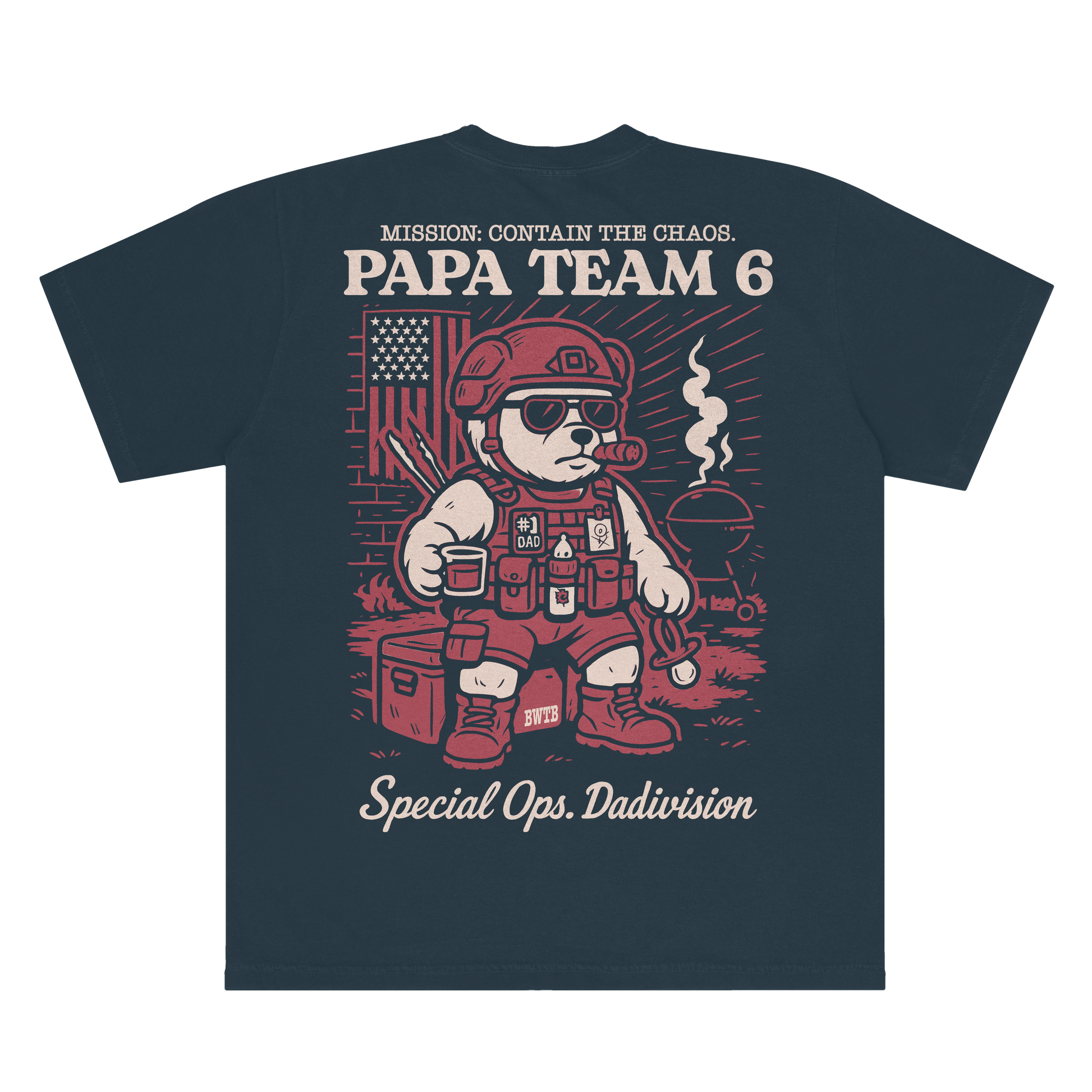 To commemorate this legendary launch, we’re dropping an official Papa Team 6 T-Shirt—battle-tested, dad-approved, and perfect for Sunday lawn patrols or late-night bottle recon.