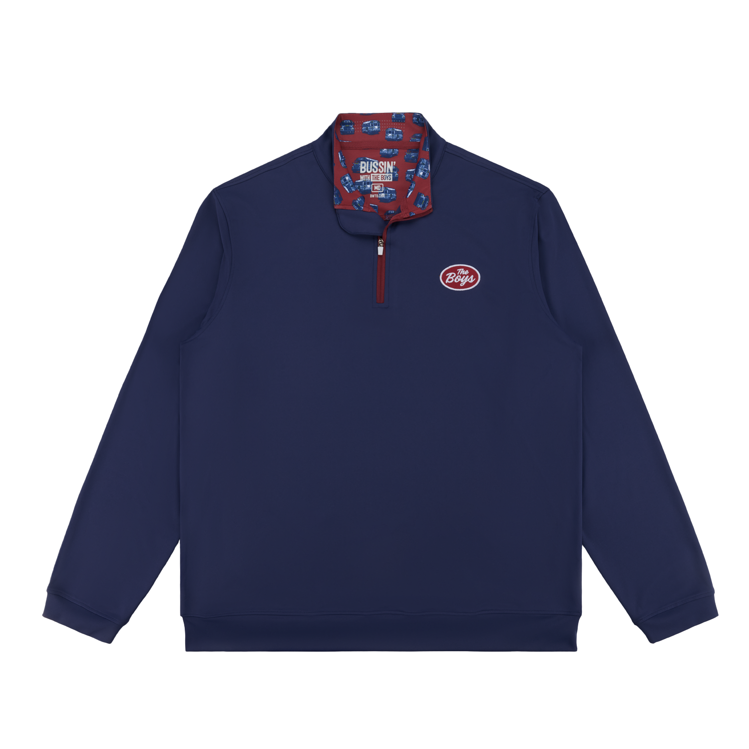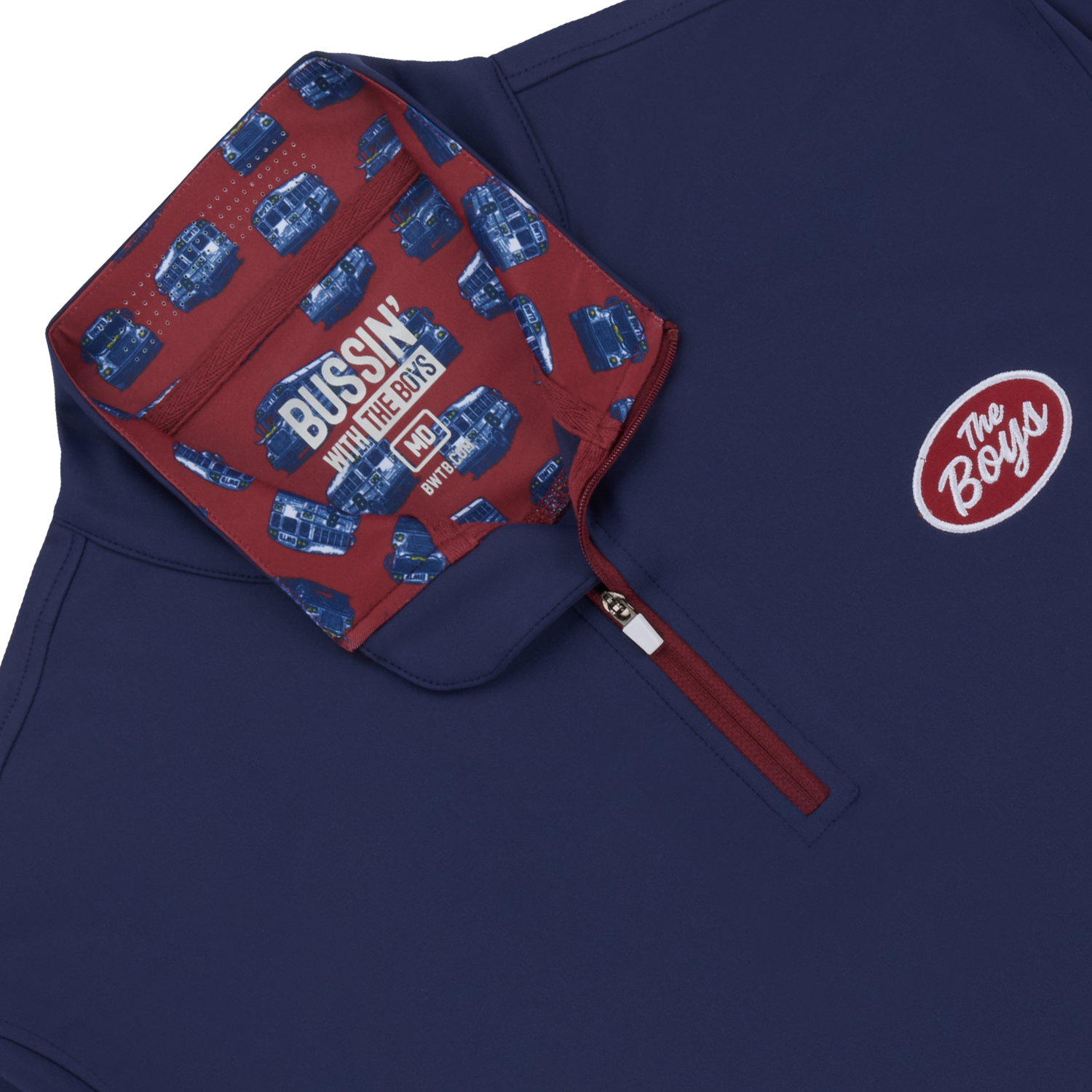 The Boys Bus Quarter Zip is your go-to layer for pregame hype, postgame hangs, and everything in between. Made with a high-performance blend of 80% polyester and 20% spandex, it delivers stretch, comfort, and durability whether you're on the move or riding shotgun. The quarter zip design adds versatility for changing temps, and the custom inner neck detail brings a hidden touch of personality.